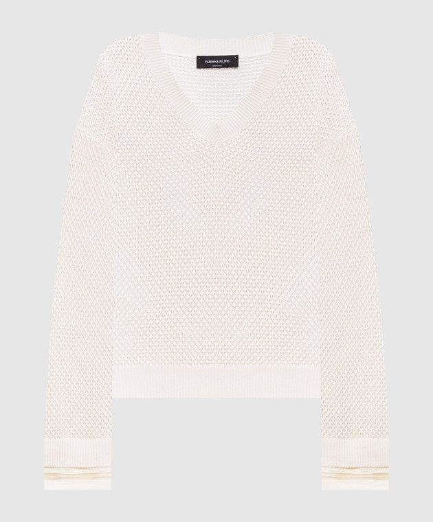 Ажурный пуловер цвета айвори с цепочкой мониль