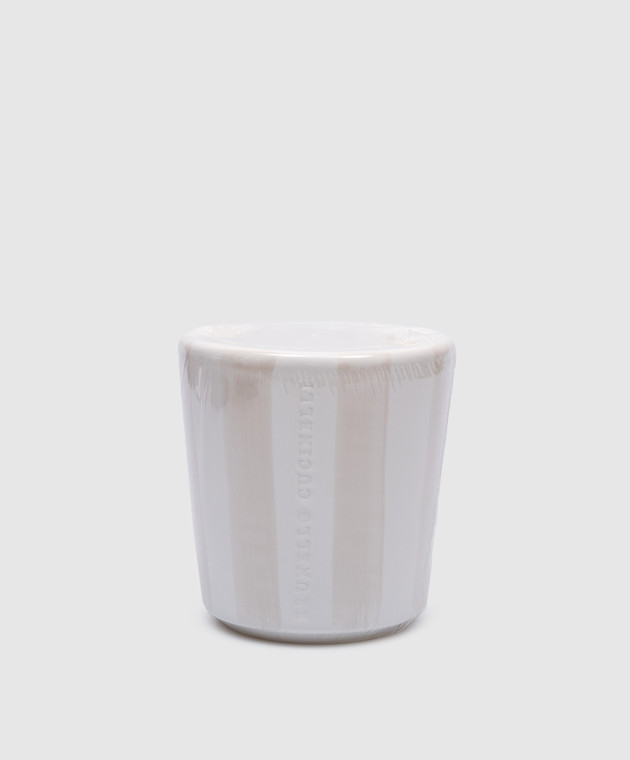 Белая ароматическая свеча в керамическом подсвечнике с логотипом