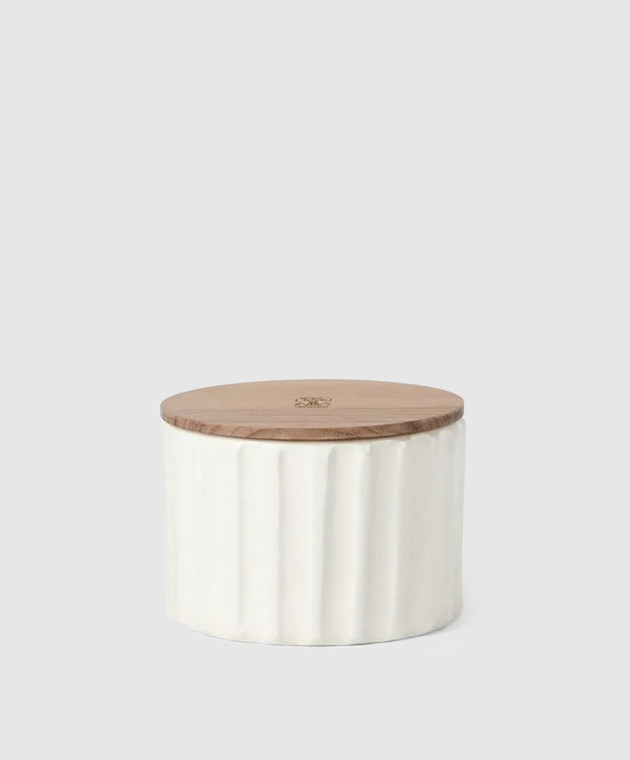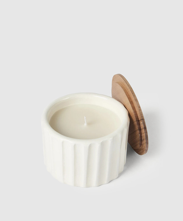 Белая ароматизированная свеча в керамическом подсвечнике