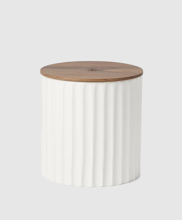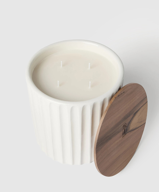 Белая ароматизированная свеча в керамическом подсвечнике
