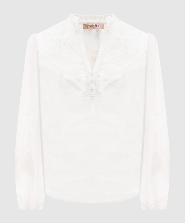 Белая блуза с цветочной вышивкой