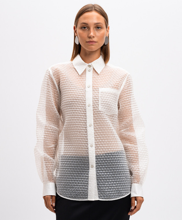 Белая блуза с шелком с эффектом пузырьковой пленки