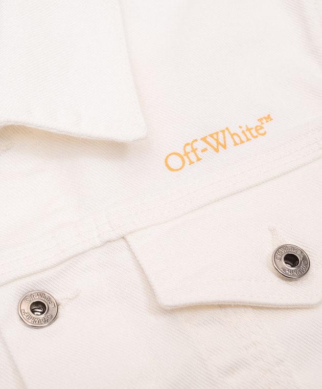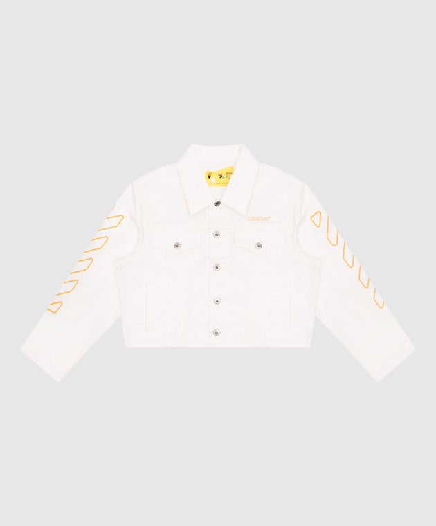 Белая детская джинсовая куртка с принтом эмблемы