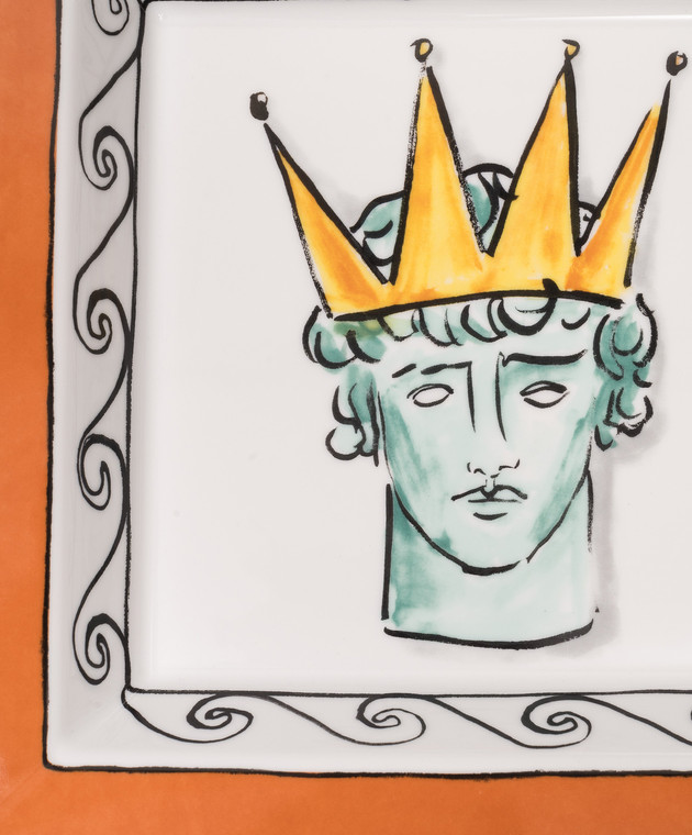 Белая фарфоровая квадратная тарелка Journey of Neptune с украшением Rock Orange