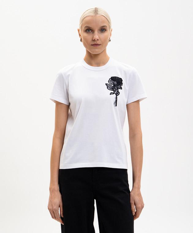 Белая футболка с контрастной вышивкой