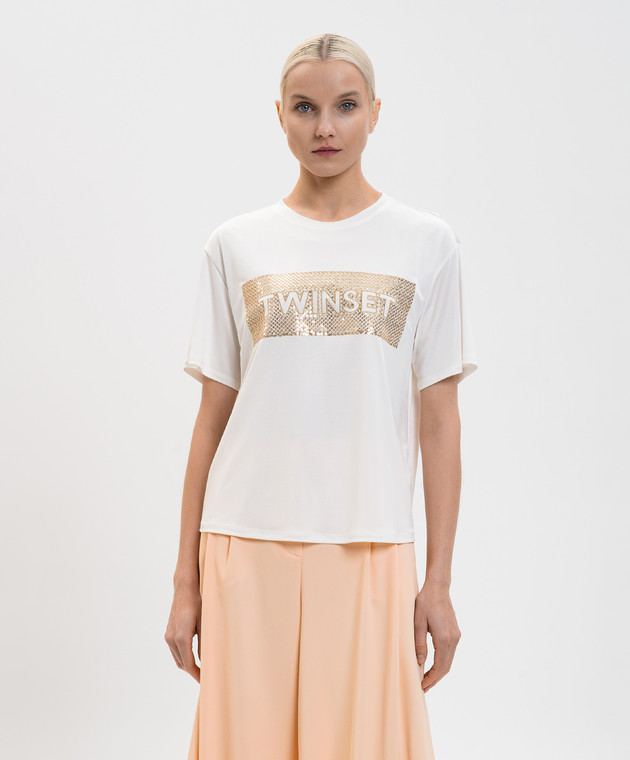 Белая футболка с пайетками