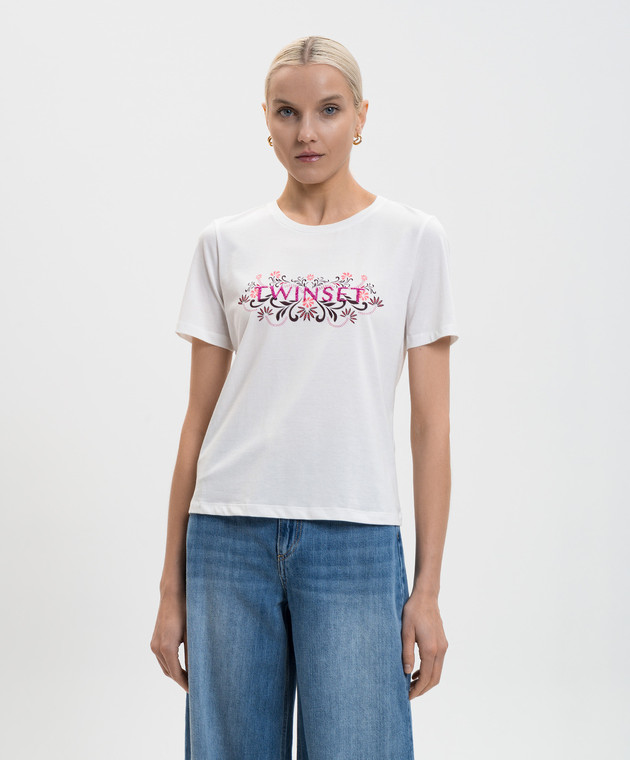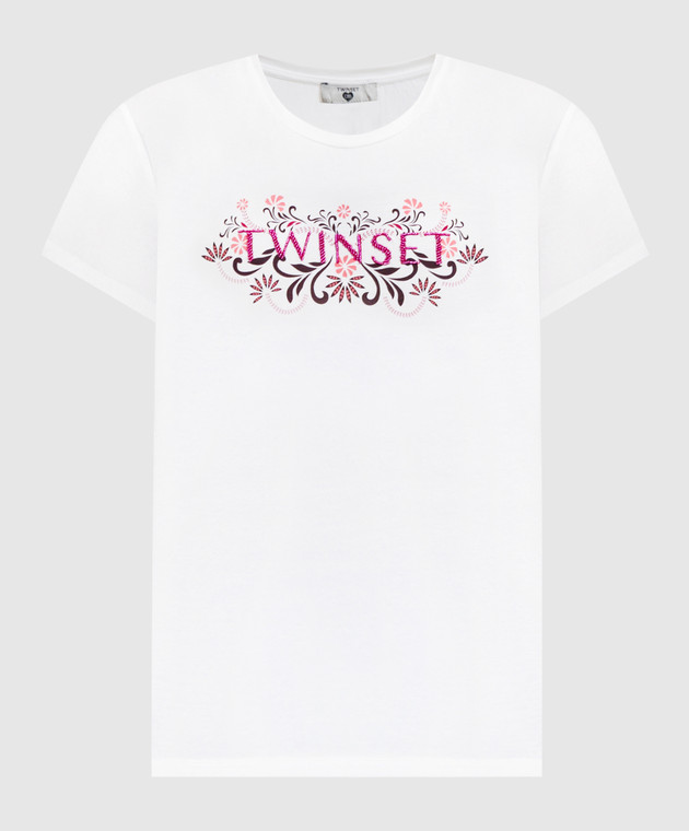 Белая футболка с вышивкой логотипа