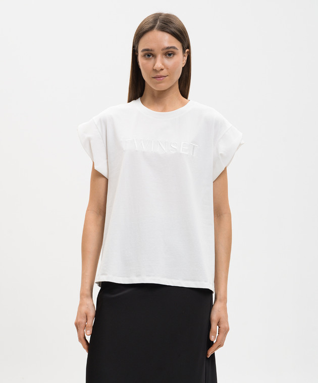 Белая футболка с вышивкой логотипа