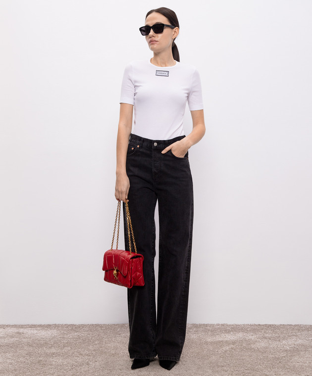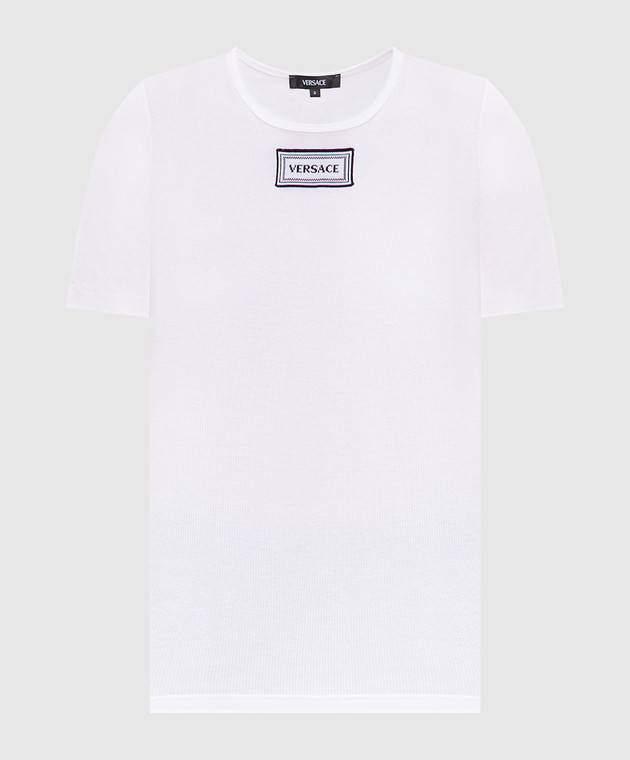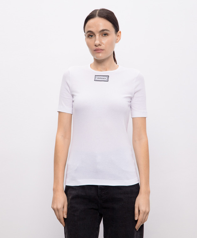 Versace Белая футболка в рубчике с нашивкой логотипа 10180991A12908