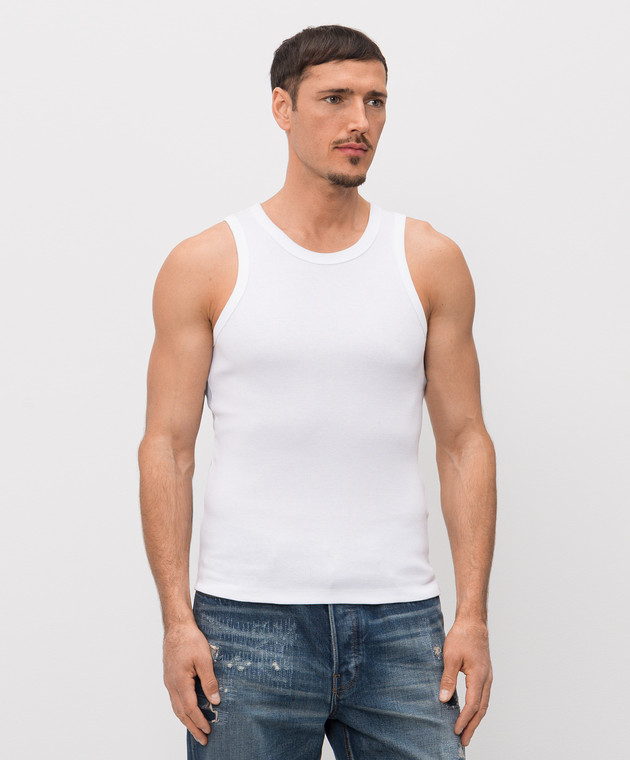 Белая майка в рубчике с принтом логотипа