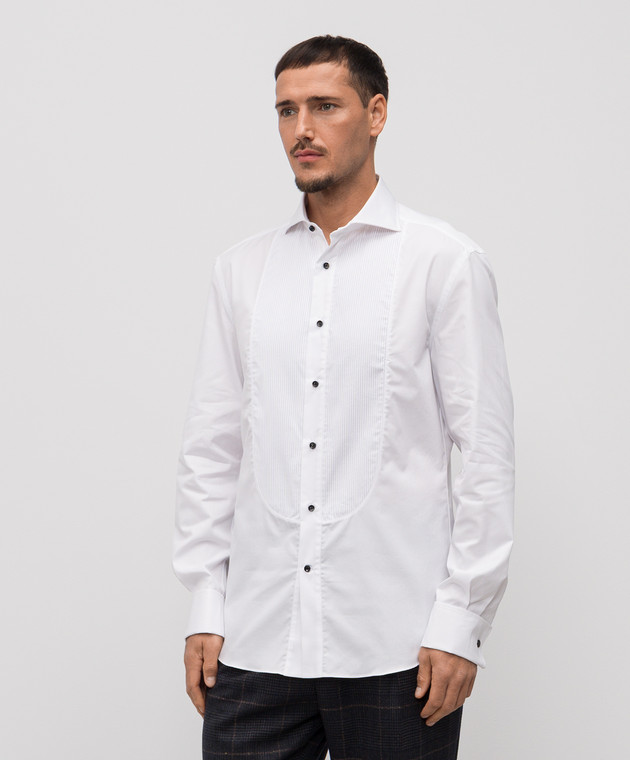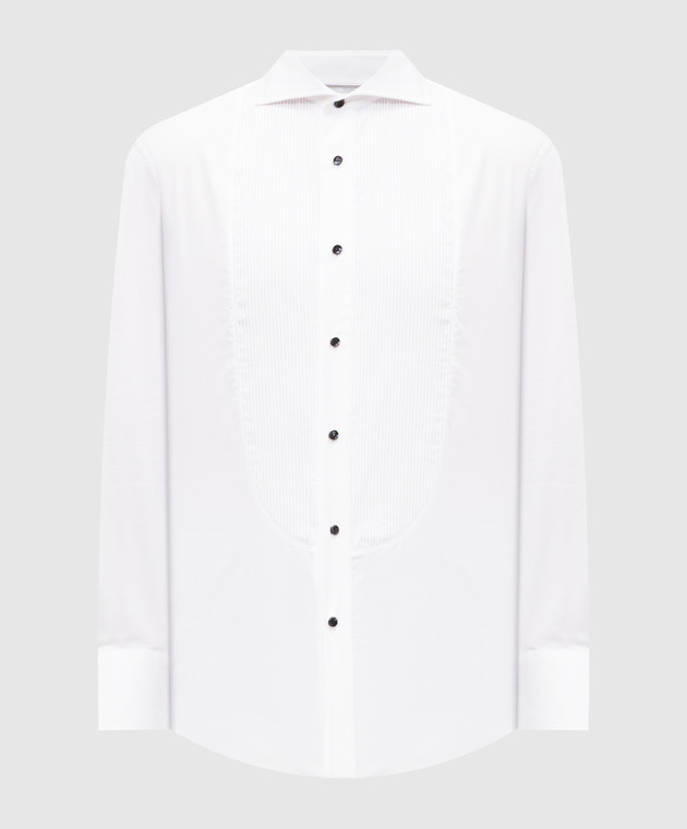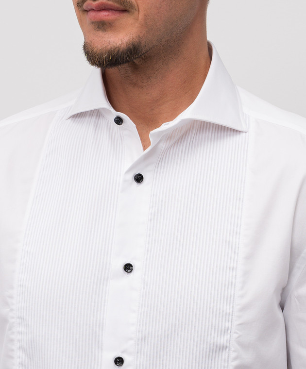 • Декор: нагрудная вставка в тканый узор полоску, встречная складка, фигурный низ