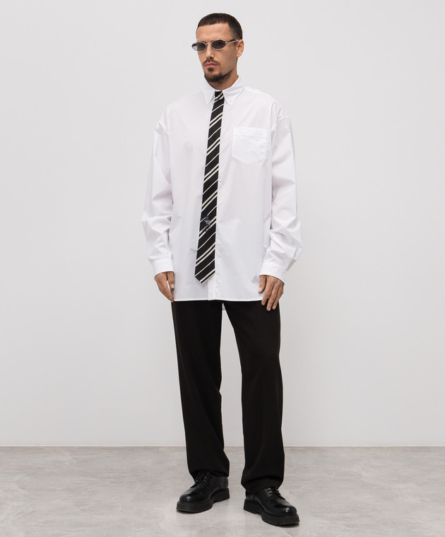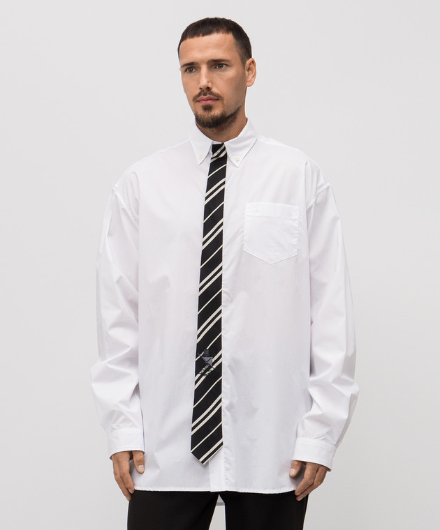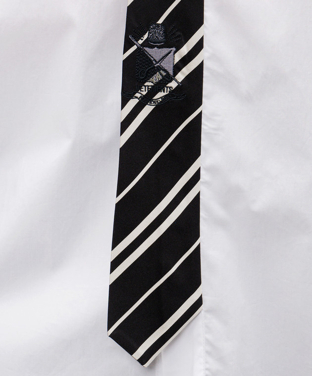 • Декор аппликация в виде галстука с вышивкой логотипа, асимметричный фигурный низ, бантовая складка.