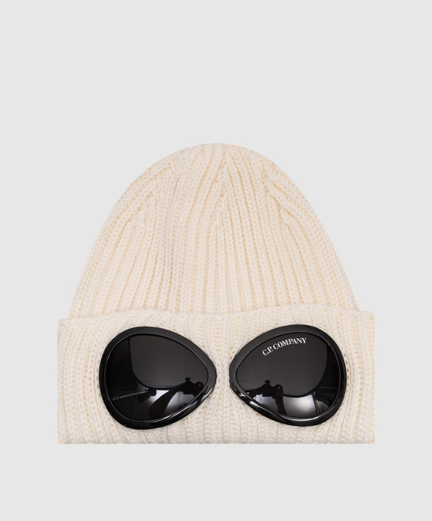 Белая шапка из шерсти с очками