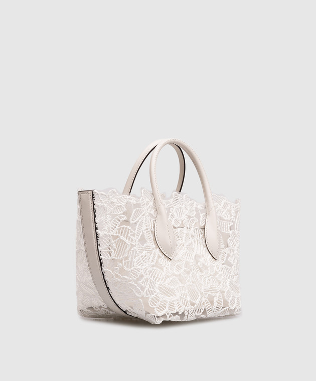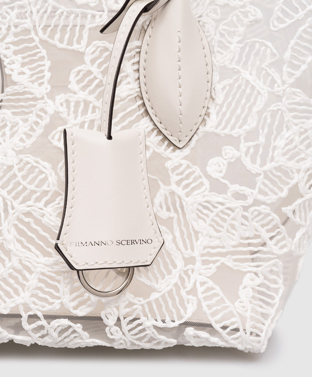 Белая сумка-тоут в цветочный узор с брелоком
