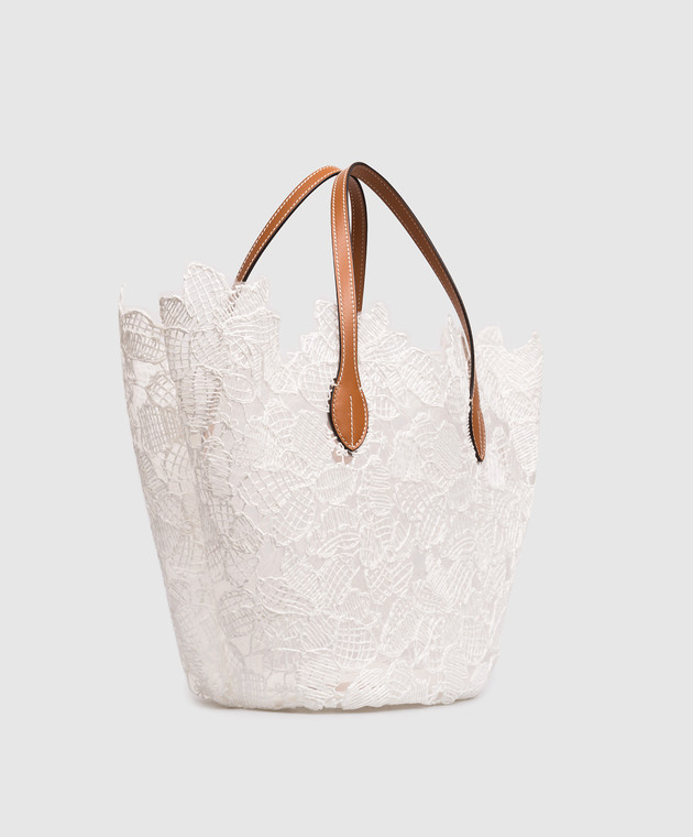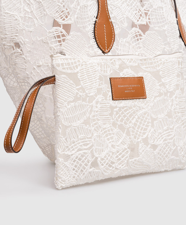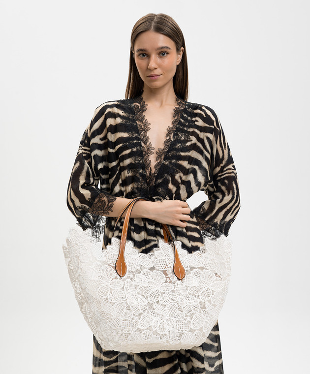 Белая сумка-тоут в цветочный узор с рафией