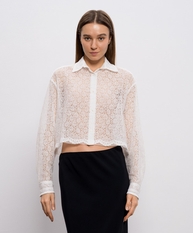 Белая укороченная блуза из кружева