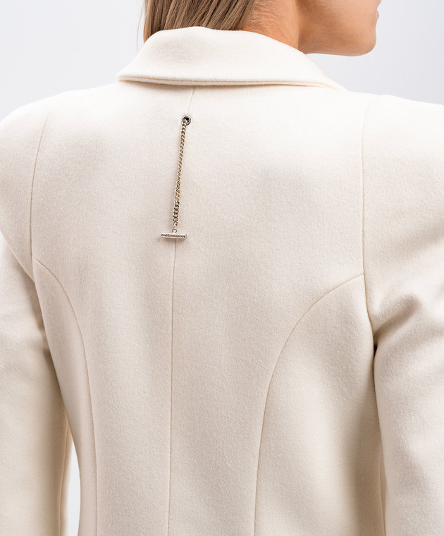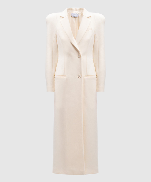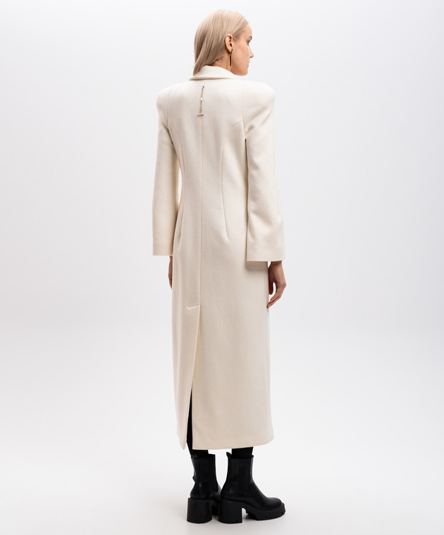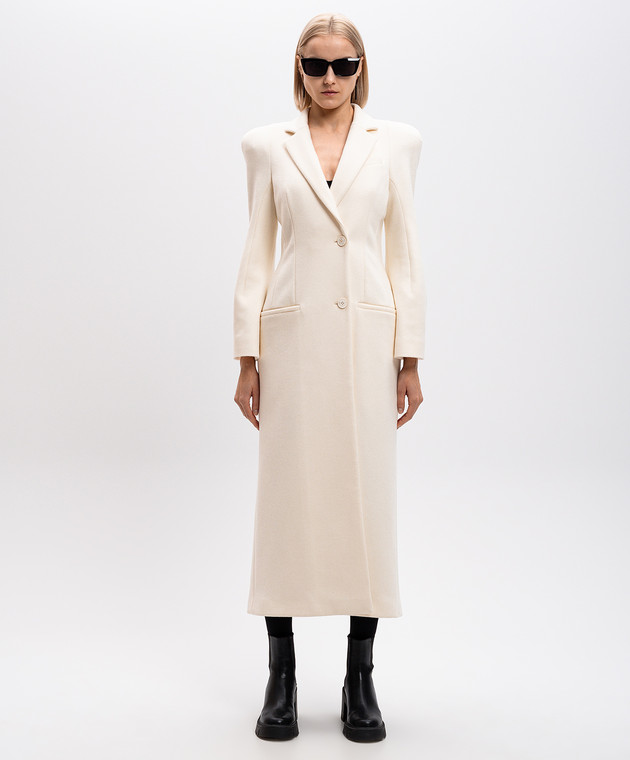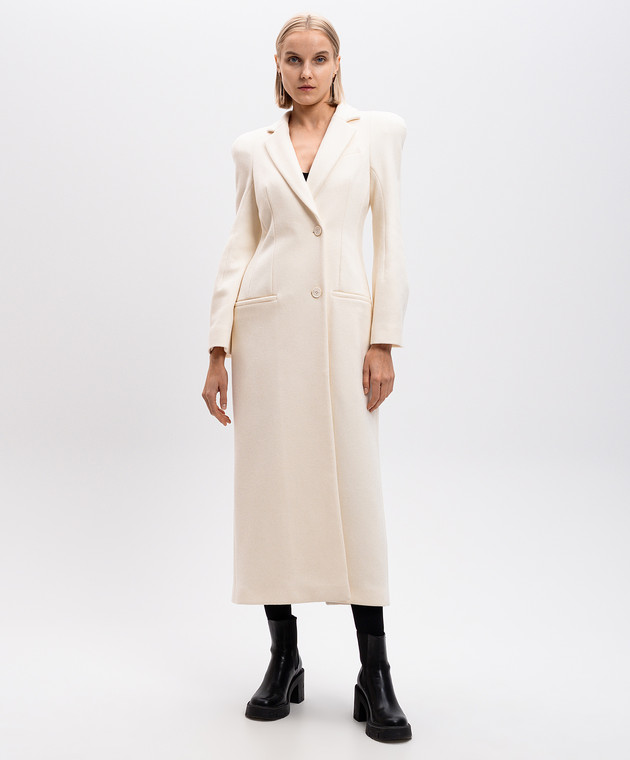 Белое двубортное пальто из шерсти и кашемира с акцентными плечами