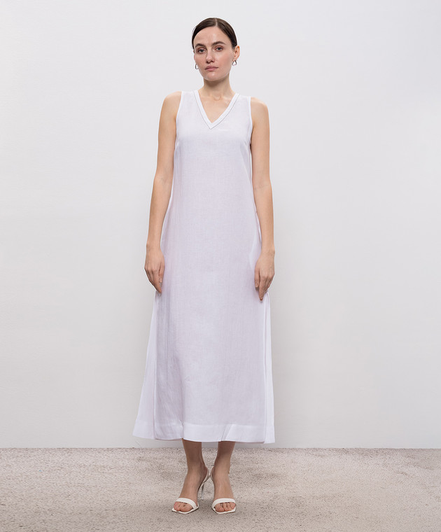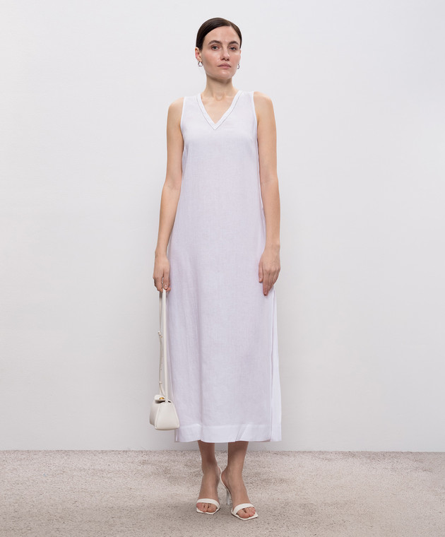 Белое платье из льна с цепочкой мониль