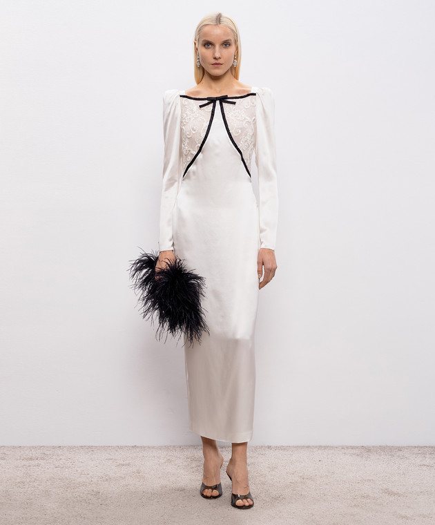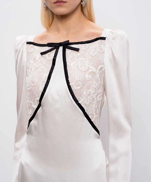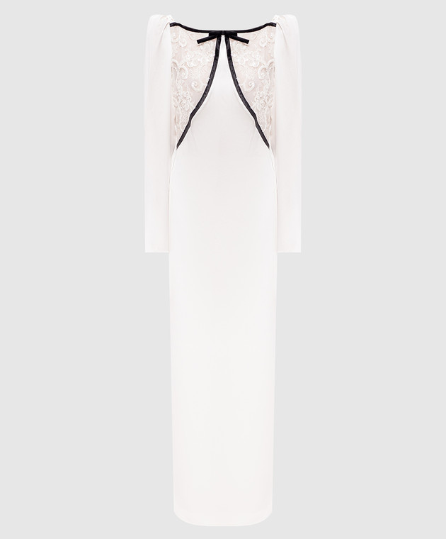 Белое платье макси из шелка с кружевом