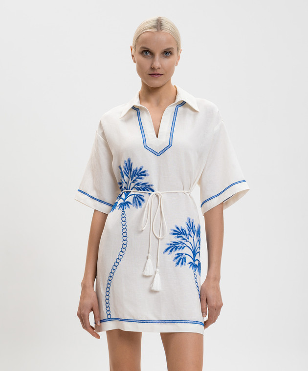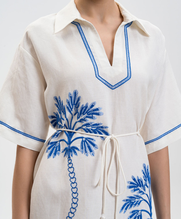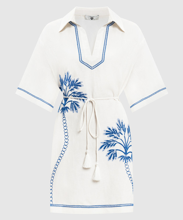 Белое платье с леном с контрастной вышивкой