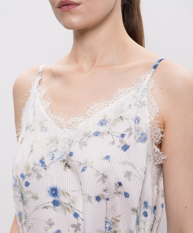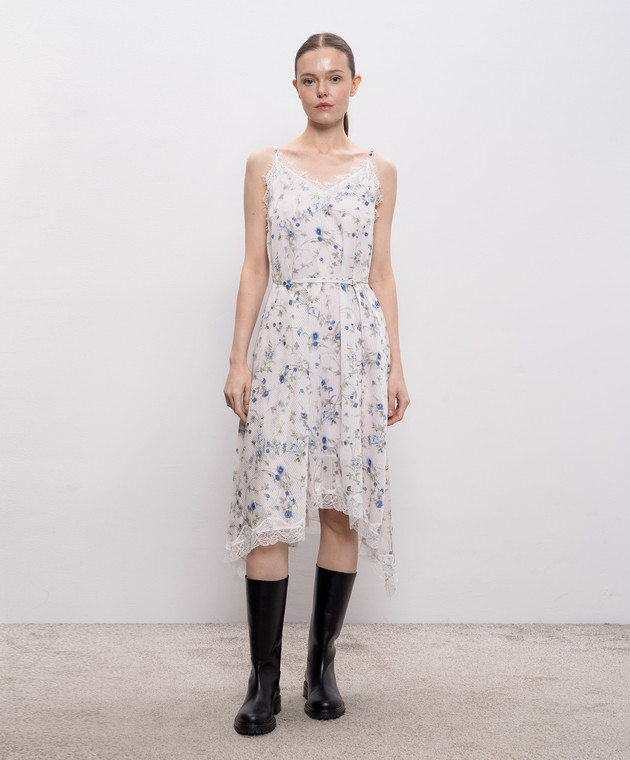 Белое платье в цветочный принт с кружевом