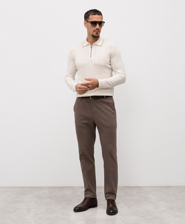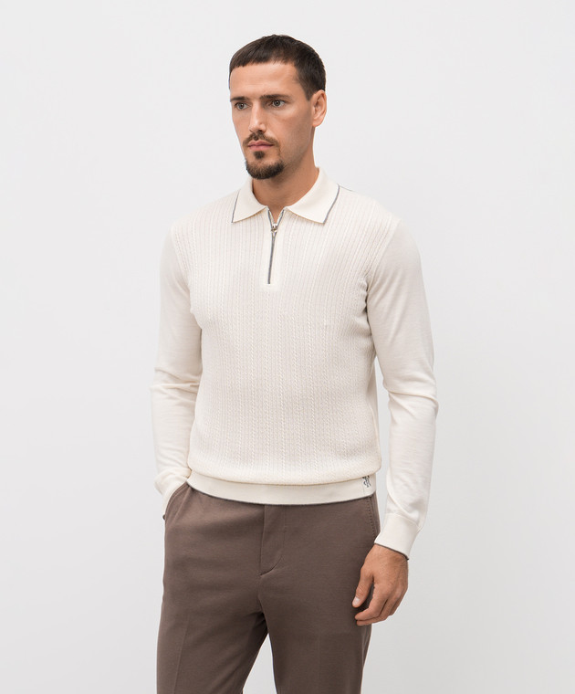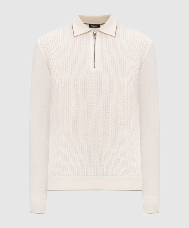 Белое поло из шерсти, шелка и кашемира с узором монограммы
