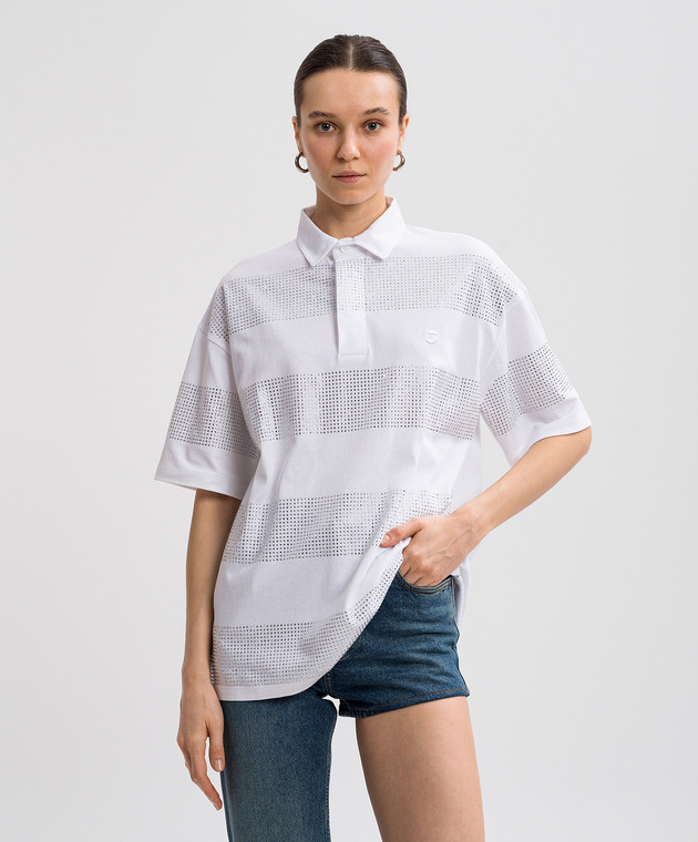 Белое поло с кристаллами