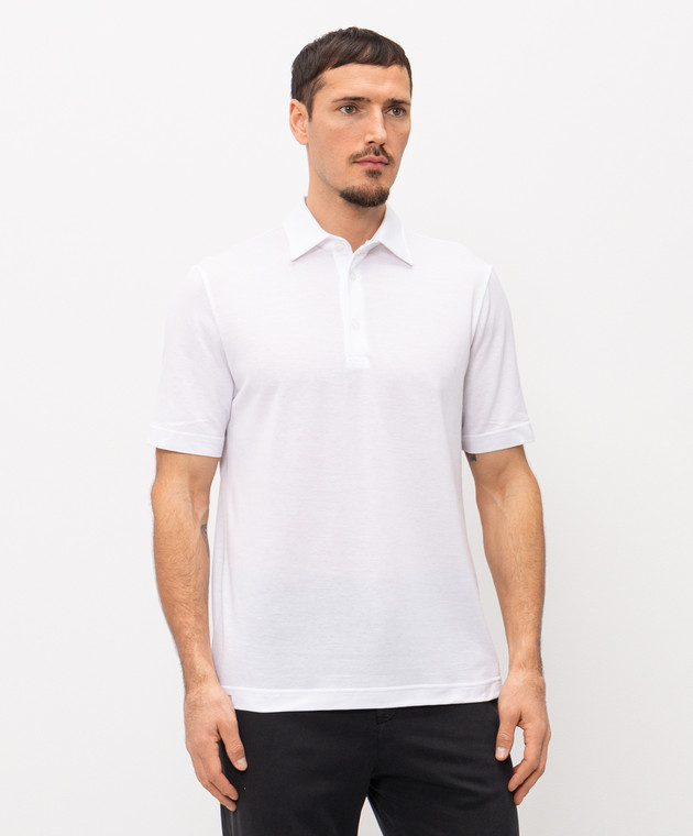 Белое поло с нашивкой логотипа