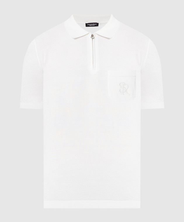Белое поло с шелком с вышивкой логотипа монограммы