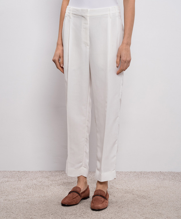 Белые брюки с леном с цепочкой мониль