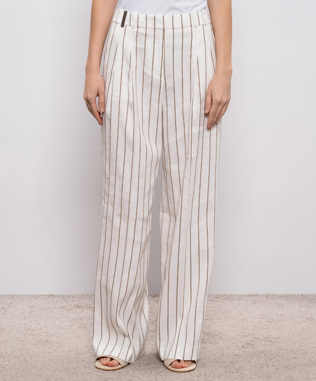 Белые брюки с леном в полоску