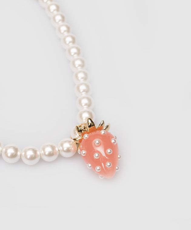Белые бусы Strawberry с позолотой