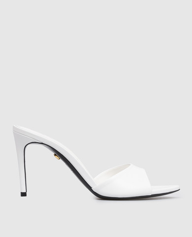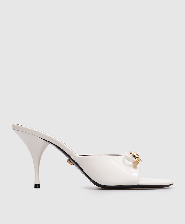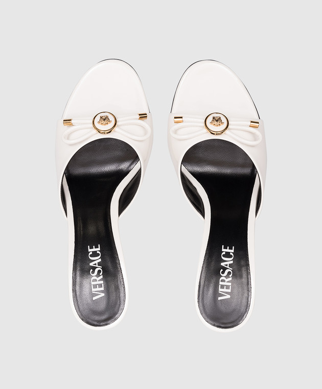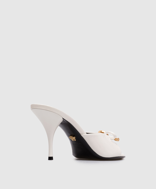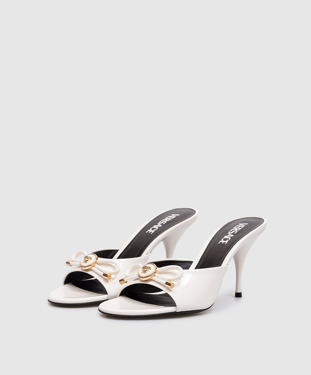 Белые кожаные лакированные мюли Opera Bow