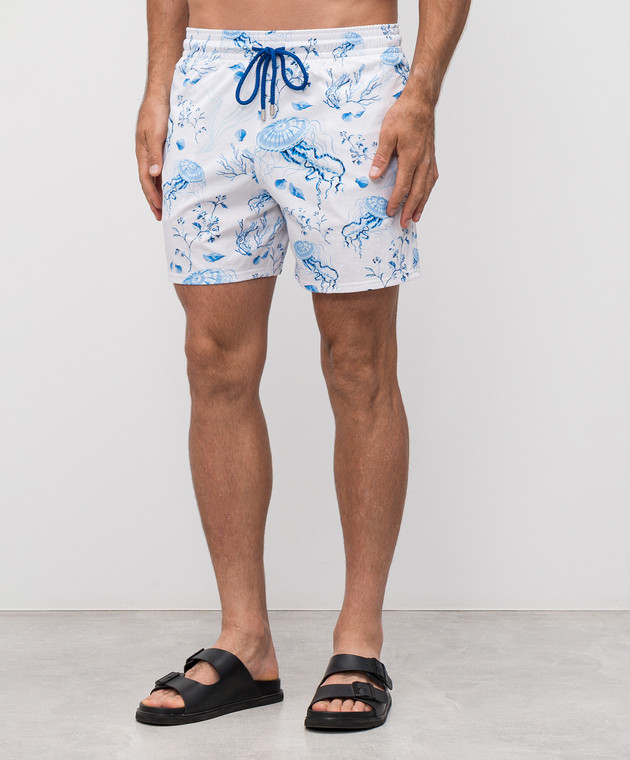 Белые шорты для плавания в узор с логотипом