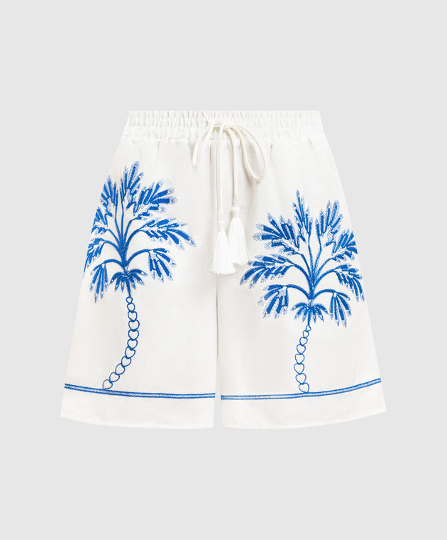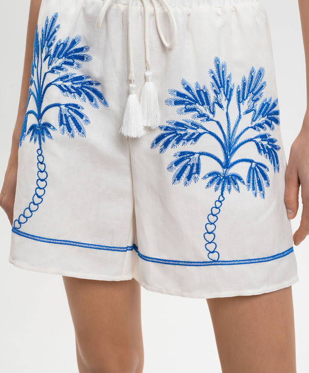 Белые шорты с леном с контрастной вышивкой