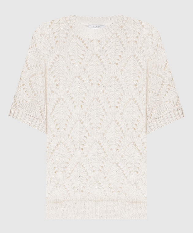 Белый ажурный топ с пайетками