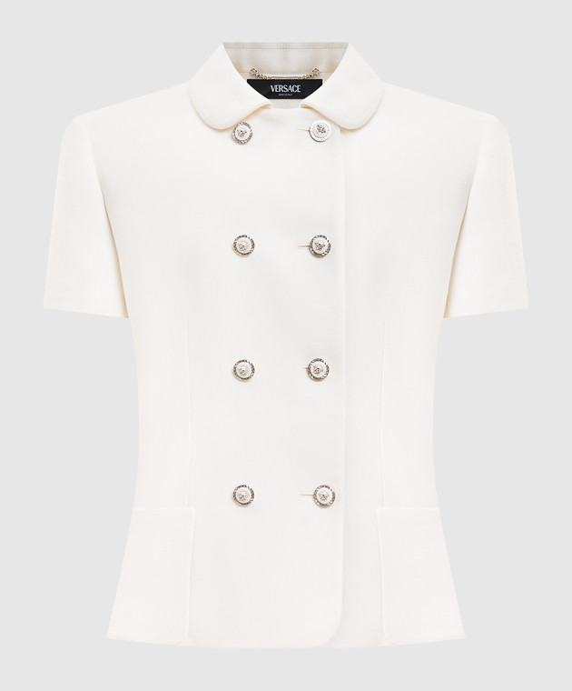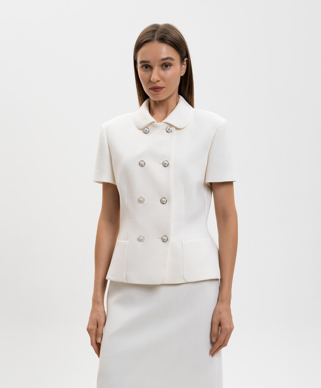 Белый двубортный жакет из шерсти