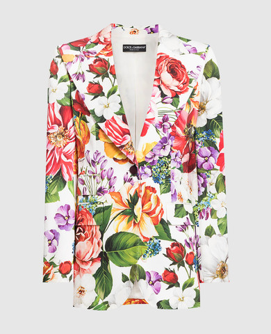 Белый двубортный жакет с контрастными деталями