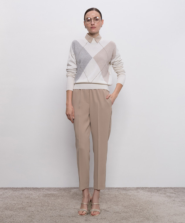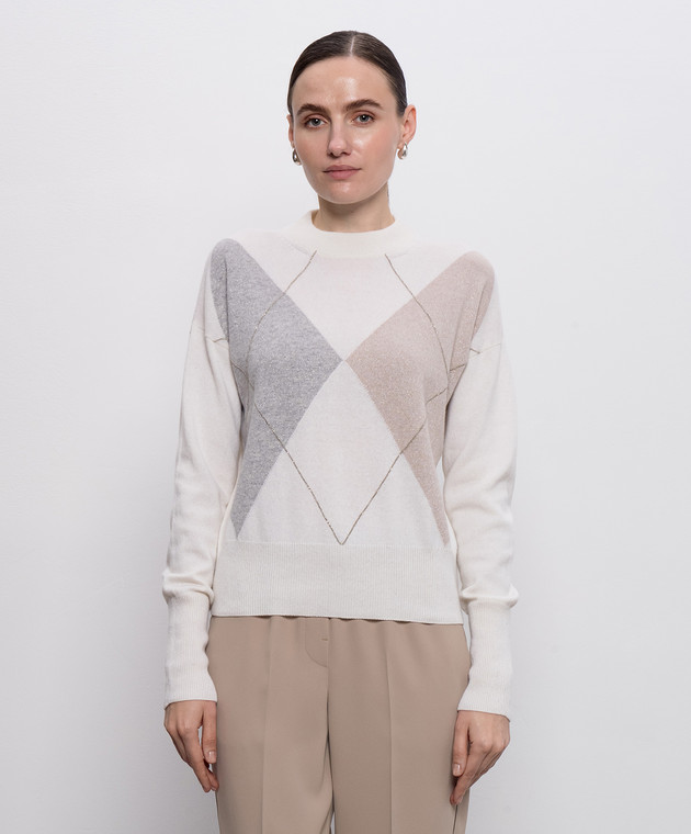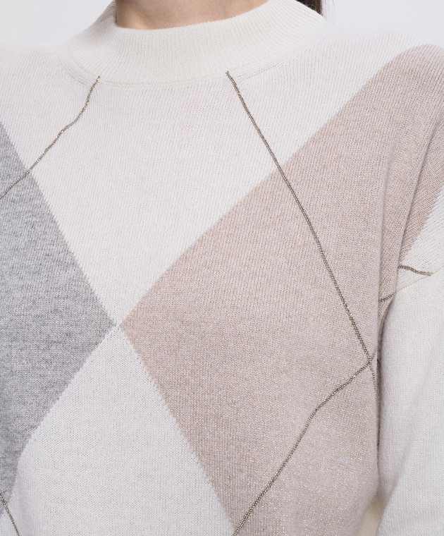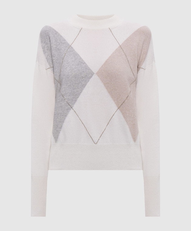 Белый джемпер из кашемира с цепочкой мониль в геометрический узор