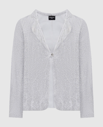 Белый кардиган с кристаллами и перьями страуса