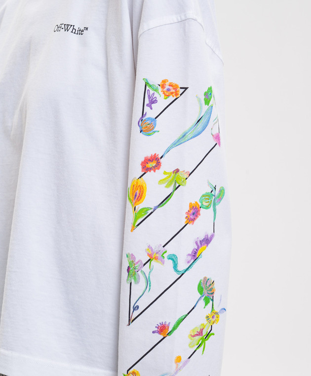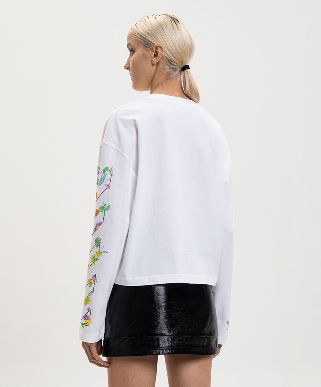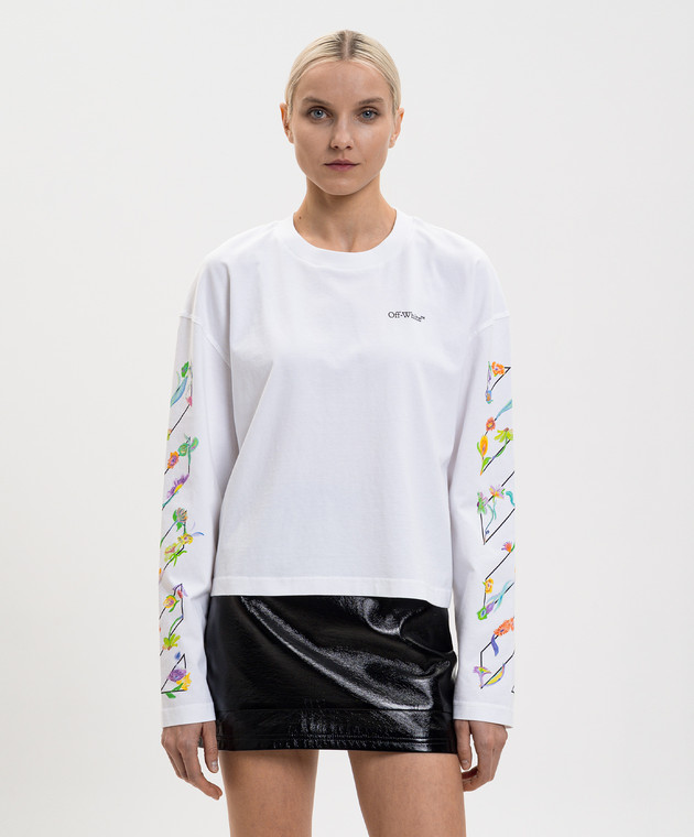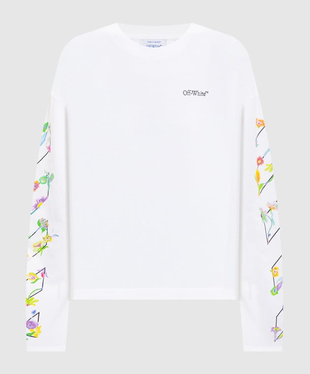 Белый лонгслив с брендовым цветочным принтом