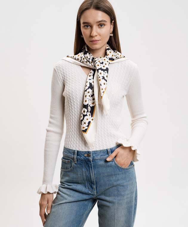 Белый платок из шелка в цветочный принт