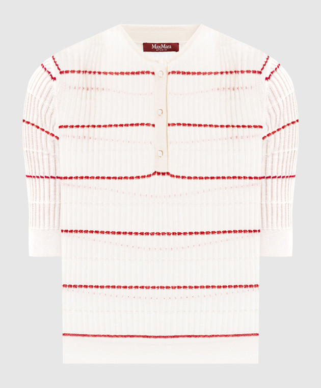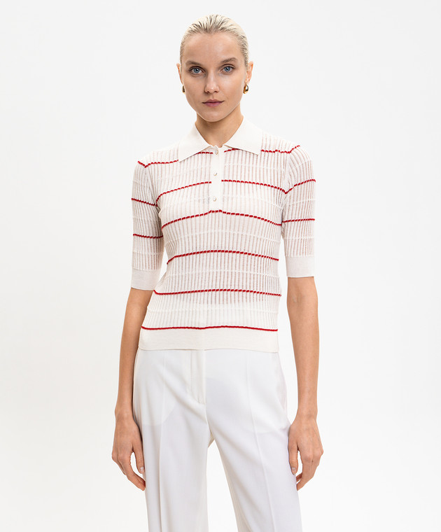 Белый топ MSTGALLO из шелка и шерсти с воротником-поло
