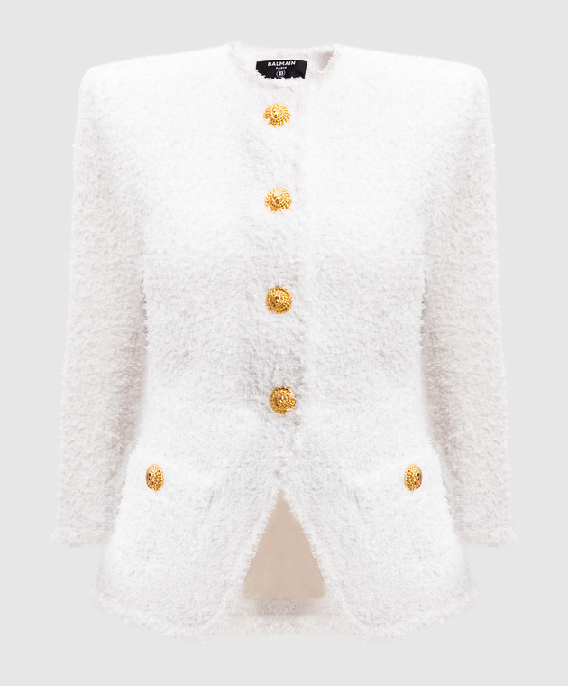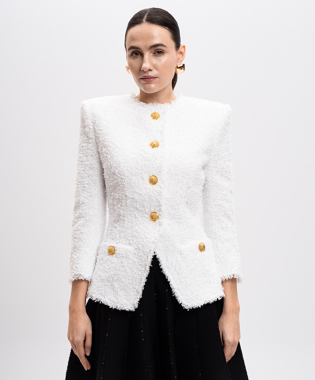Белый твидовый жакет с акцентной фурнитурой