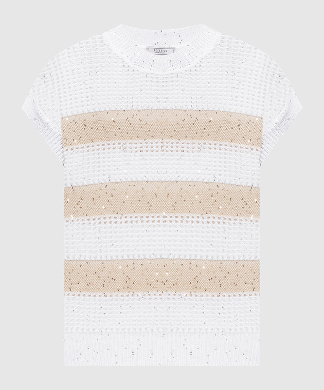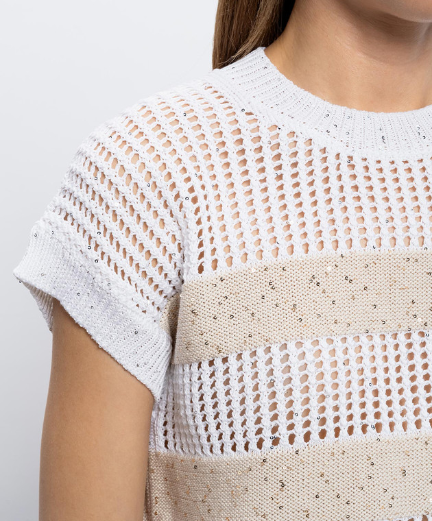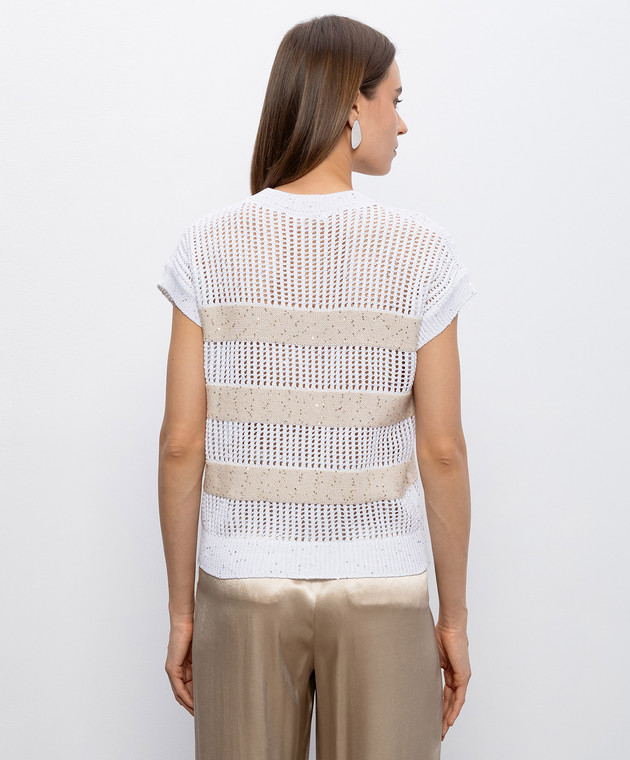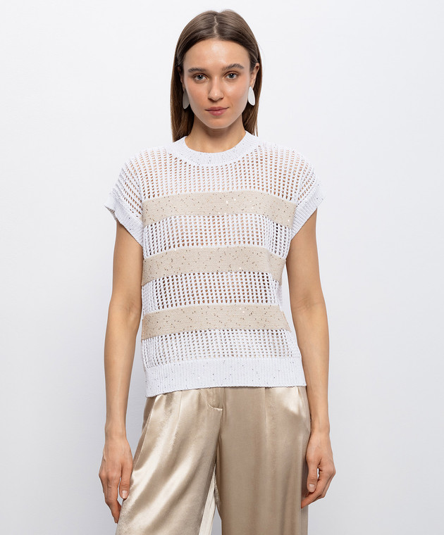 Белый вязаный топ в полоску
