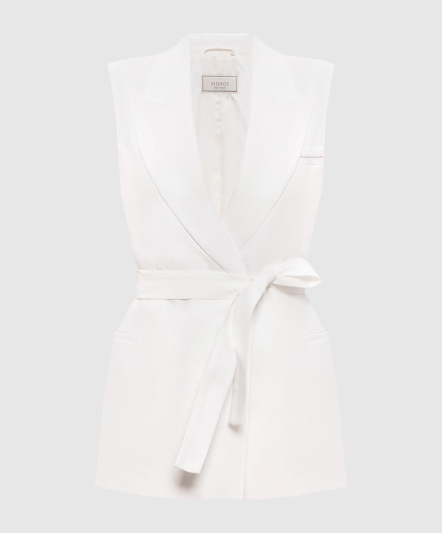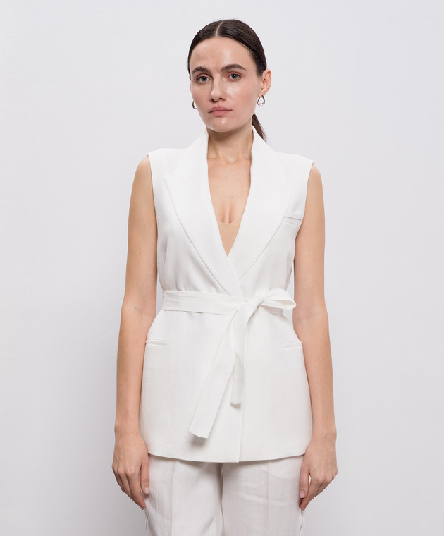Белый жилет из льна с поясом