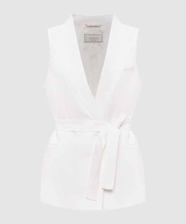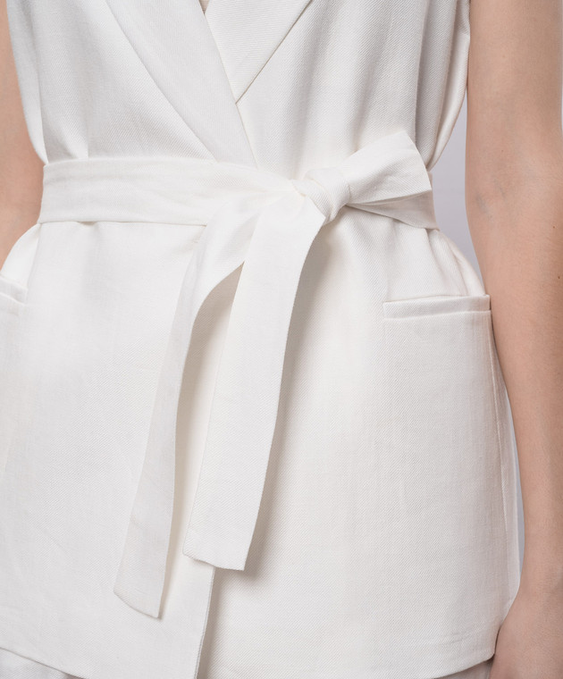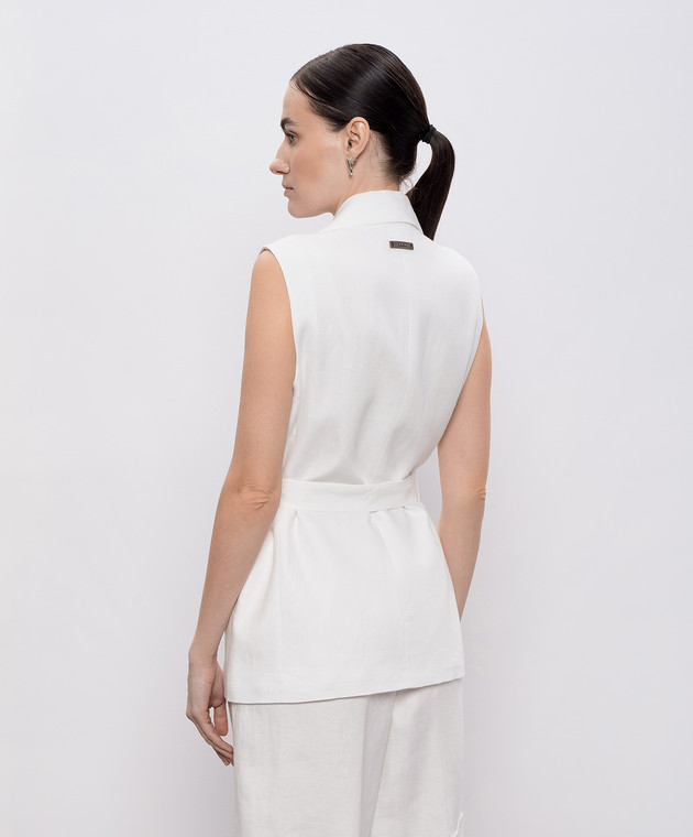 Белый двубортный жилет из льна с цепочкой мониль