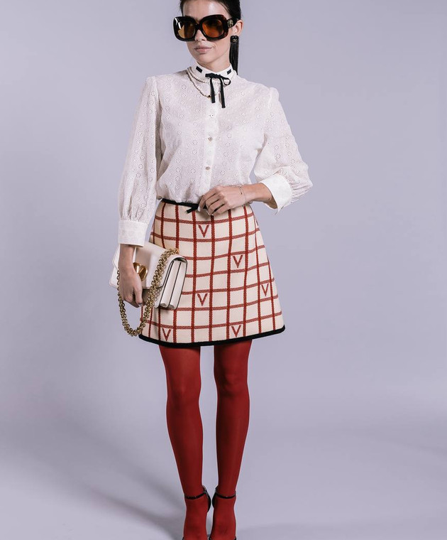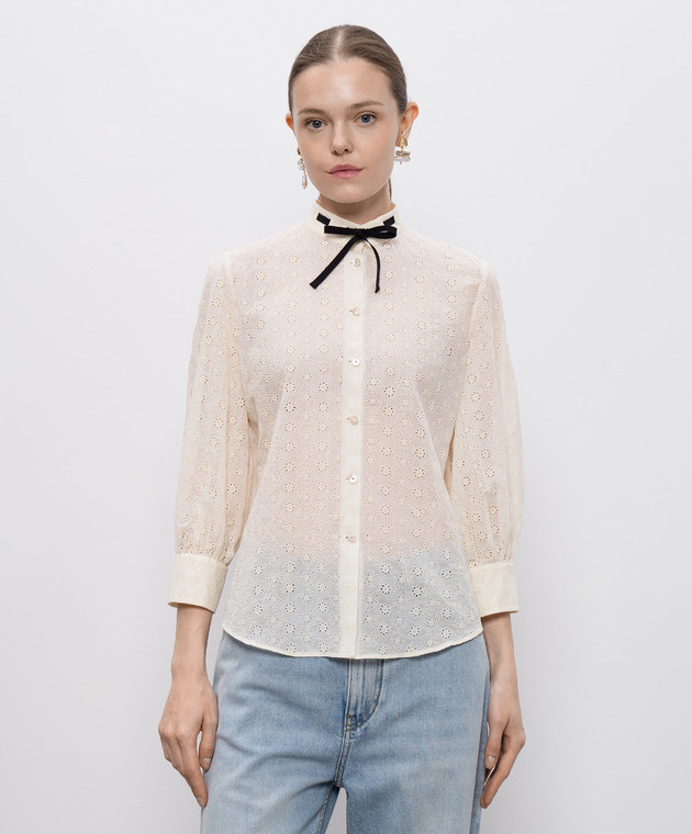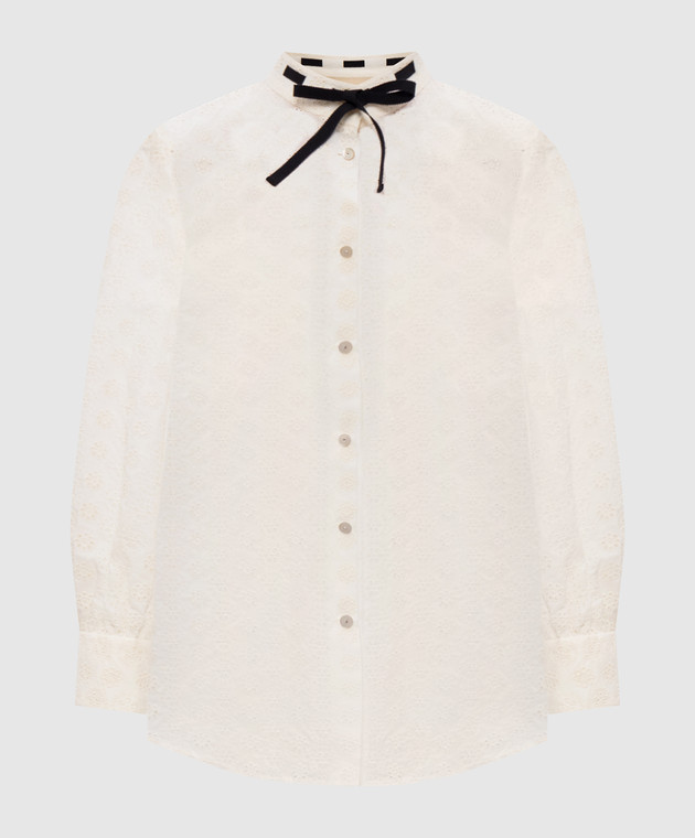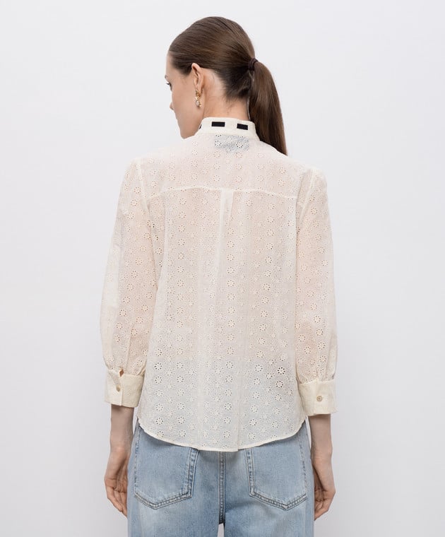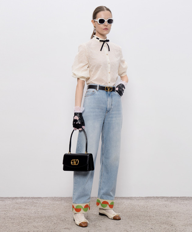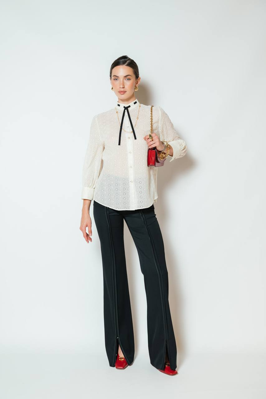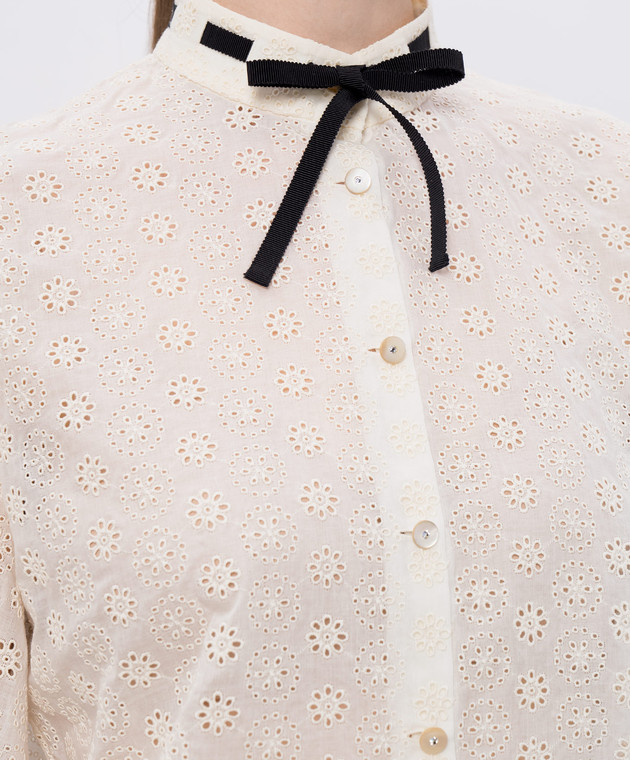 - Декор вышивка бродери, контрастная лента на воротнике, фигурный низ