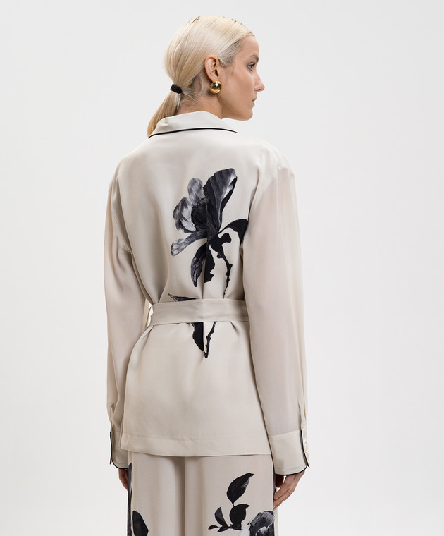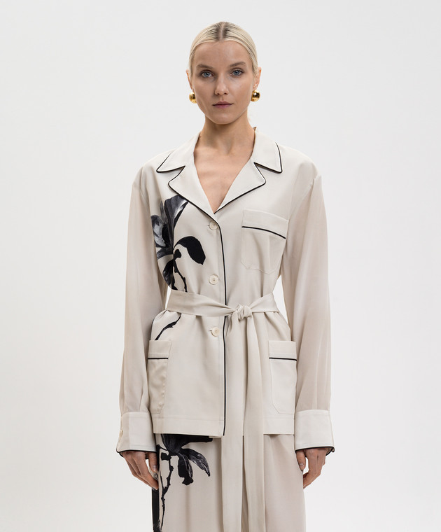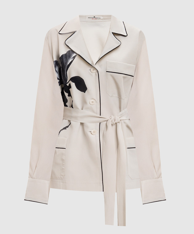 • Декор цветочный принт, контрастное окантование, разрезы в боковых швах
