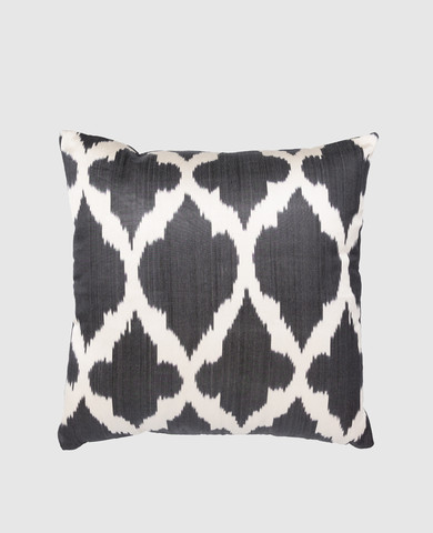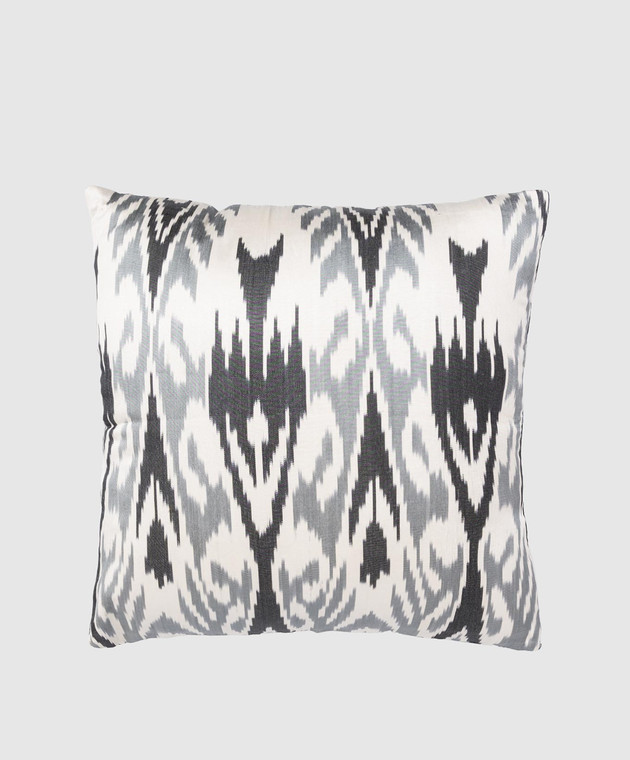 Бежевая декоративная подушка из шелка с абстрактным принтом